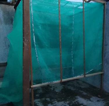 To support the breeding process of BSF flies, Imbau Ranah Hijau constructed cages using two main materials: timber and mesh netting. Timber is used as the primary structural frame, while leftover wood pieces are repurposed as egg-laying media for the flies. The mesh netting encloses the cage to ensure the flies remain inside. With dimensions of approximately 60 x 90 x 150 cm, the cage can accommodate hundreds to thousands of flies at once.