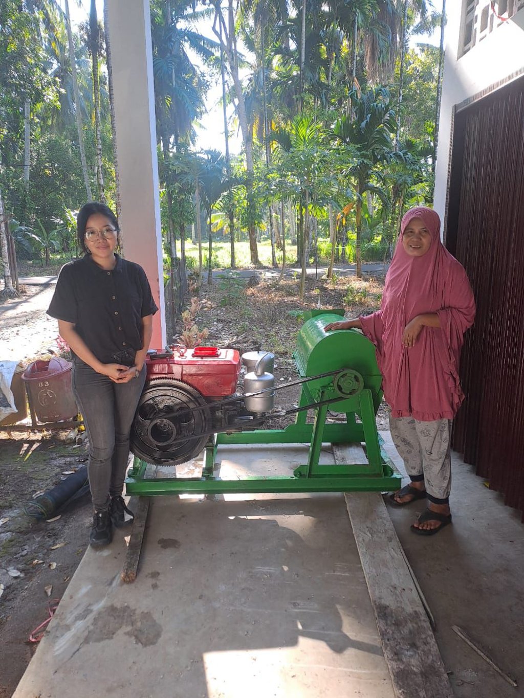 Memasuki tahun 2025, kami memperluas pendekatan dengan menjajaki kerja sama dengan sektor swasta. Upaya ini membuahkan hasil melalui dukungan pendanaan sebesar Rp20 juta. Dana tersebut kami alokasikan untuk pengadaan mesin chopper senilai Rp8,5 juta, yang memiliki kapasitas produksi hingga 200 kg cocopeat dan cocofiber per hari. Selanjutnya, kami melaksanakan serah terima mesin sekaligus pelatihan operasional yang melibatkan pelaku usaha lokal di bidang pengolahan cocopeat dan cocofiber. Pelatihan ini diikuti oleh 20 anggota kelompok dan berlangsung selama dua jam. Materi yang disampaikan mencakup demonstrasi penggunaan mesin, mulai dari cara pengoperasian, ukuran ideal sabut kelapa untuk diproses, perlakuan awal seperti perendaman, hingga perawatan mesin agar tetap berfungsi secara optimal.